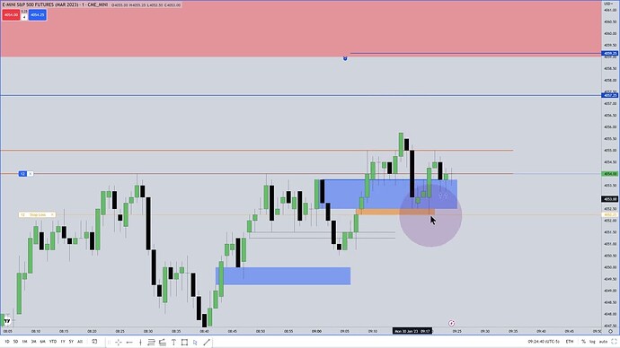 ES Trade Example - Trade Executions And PD Arrays On 1-Minute Chart