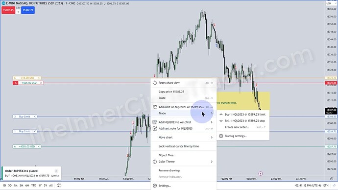 NQ Live Trade Example - Trade In Progress