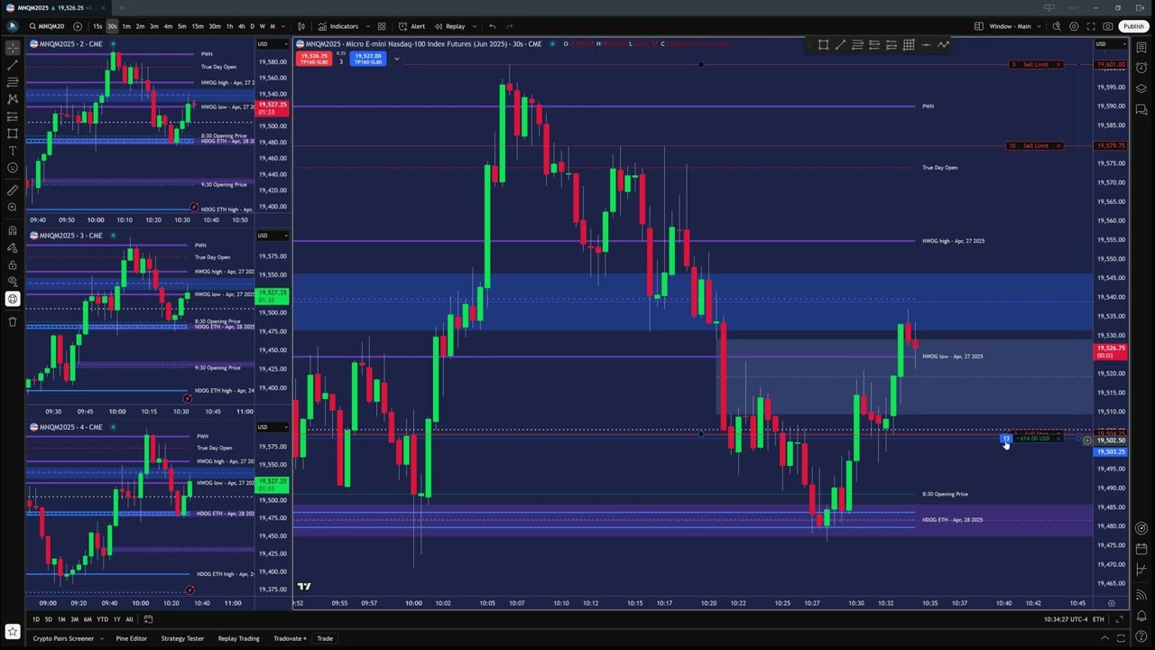 My reason for entering this long trade is as follows. Both ES and NQ have removed liquidity below the current low of the day and were around 75% of the retracement of yesterday’s range (also an OTE level). As I stated, I did not expect a break of the previous day’s low, and it was approaching lunchtime when at least a retracement, if not a complete reversal, could be expected. So, this is the main reason (logic) behind this trade idea.